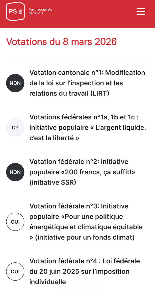 Site Votations du Parti Socialiste Genevois